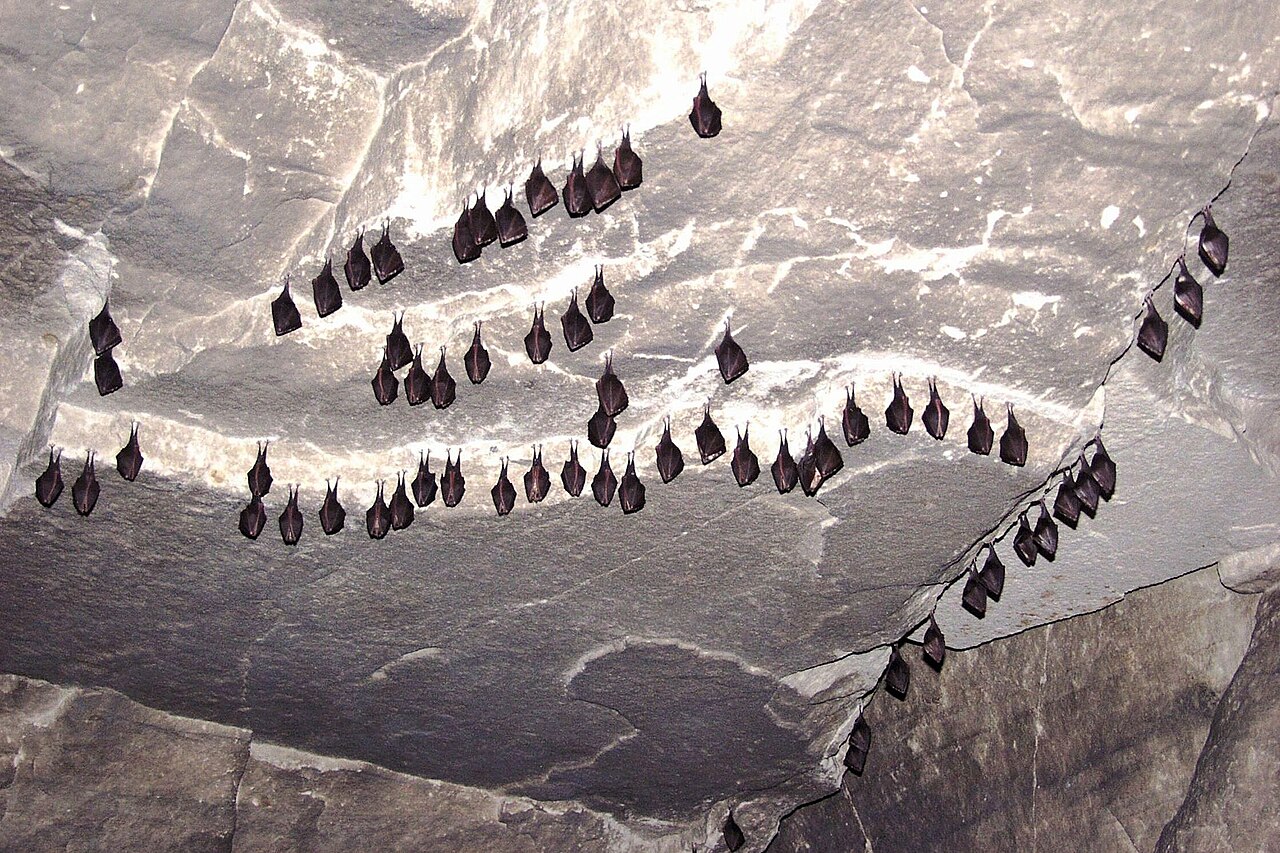 Les Rhinolophes (trois espèces présentes dans le Parc) se reconnaissent facilement à leur museau très particulier constitué d’une feuille nasale en forme de fer à cheval qui entoure les narines et qui est surmontée d’une petite crête. Le nom de cette espèce, dérivé du grec, rappelle bien cette particularité : rhinos : le nez , lophos : la crête et hippos : le cheval, sideros : le fer. Avec ses 4 cm de longueur et ses 20 cm d’envergure, le Petit rhinolophe est le plus petit représentant du genre Rhinolophus. Bien que petit, le Petit Rhinolophe compte un grand nombre de données. Elle est régulièrement contactée d’abord parce qu’elle est facilement repérable : au repos, en gîte diurne estival ou en léthargie hivernale, elle s’accroche au plafond et aux parois par les pieds et pend, librement, la tête en bas. D’autre part, elle est nettement anthropophile et s’installe dans tous types de constructions, vieux bâtiments (châteaux, églises), habitées ou non, dans les maisons forestières… occupant combles et greniers en été ou les caves, souterrains ou galerie de mines en hiver sans compter tous types de cavités naturelles (grottes et avens). Enfin, ses émissions ultrasonores produites par le nez, bien que difficiles à capter car faibles en intensité, sont très faciles à identifier à l’aide d’un détecteur. En hibernation, cette petite chauve-souris est entièrement enveloppée dans ses ailes presque noires, tel un petit parapluie. Avec près d’un millier de contacts dans la base de données, on peut considérer l’espèce comme assez commune, voire commune si l’on en juge par sa répartition relativement homogène sur l’ensemble du territoire du Parc national. En léthargie hivernale, le Petit Rhinolophe est l’une des espèces de chiroptères les plus contactées lors des comptages annuels de janvier.